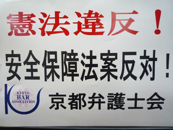 報告です。7月22日、京都弁護士会・日本弁護士連合会共催で「戦後70年と安保法制を考える市民集会」が開催され、550人が参集。