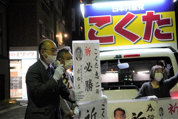 総選挙 11日目② 九条河原町で倉林参院議員とともに訴え、1区の5行政区をまわる