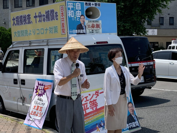 今月も、炎天下の中、地元・上京区選出の、くらた共子京都市会議員と「天神さん」宣伝に取り組みました。