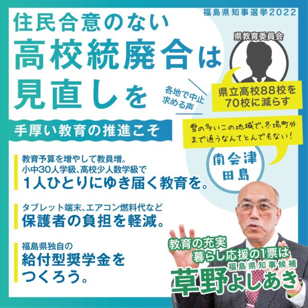 福島県知事選は、明日が投開票日。汚染水海洋放出ストップの願いはこぞって草野氏へ!