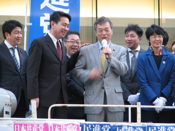 民進党からは、前原誠司、石関貴史、木内孝胤、篠原豪の各衆院議員、川田龍平参院議員が訴えました。