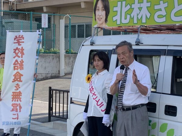 向日駅東口開発など巨額の大型公共事業の無駄遣いの一方、高い国保料の押しつけ、学校給食費の秋からの値上げにキッパリ対決できる日本共産党の6議席の必要性について言及。「小・中学教給食費の無償化に反対しているのは、自民、公明、維新。今回の選挙で,住民要求に背を向けるこれら市長与党にキッパリとした審判を下し、今度は、値上げでなく小中学校給食費の無償化を実現しようではないか」と呼びかけました。