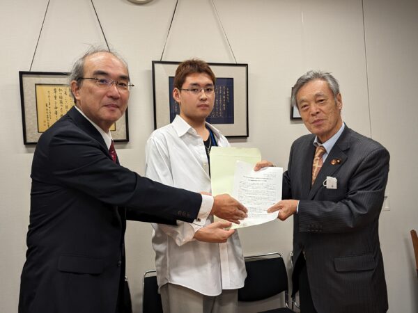 報告です。10月31日、京滋地区私立大学教職員組合連合(略称・京滋私大教蓮)から「私立大学生の学費の負担の大幅軽減と私大助成の増額を求める国会請願署名」への協力要請を受け、親しく懇談しました。