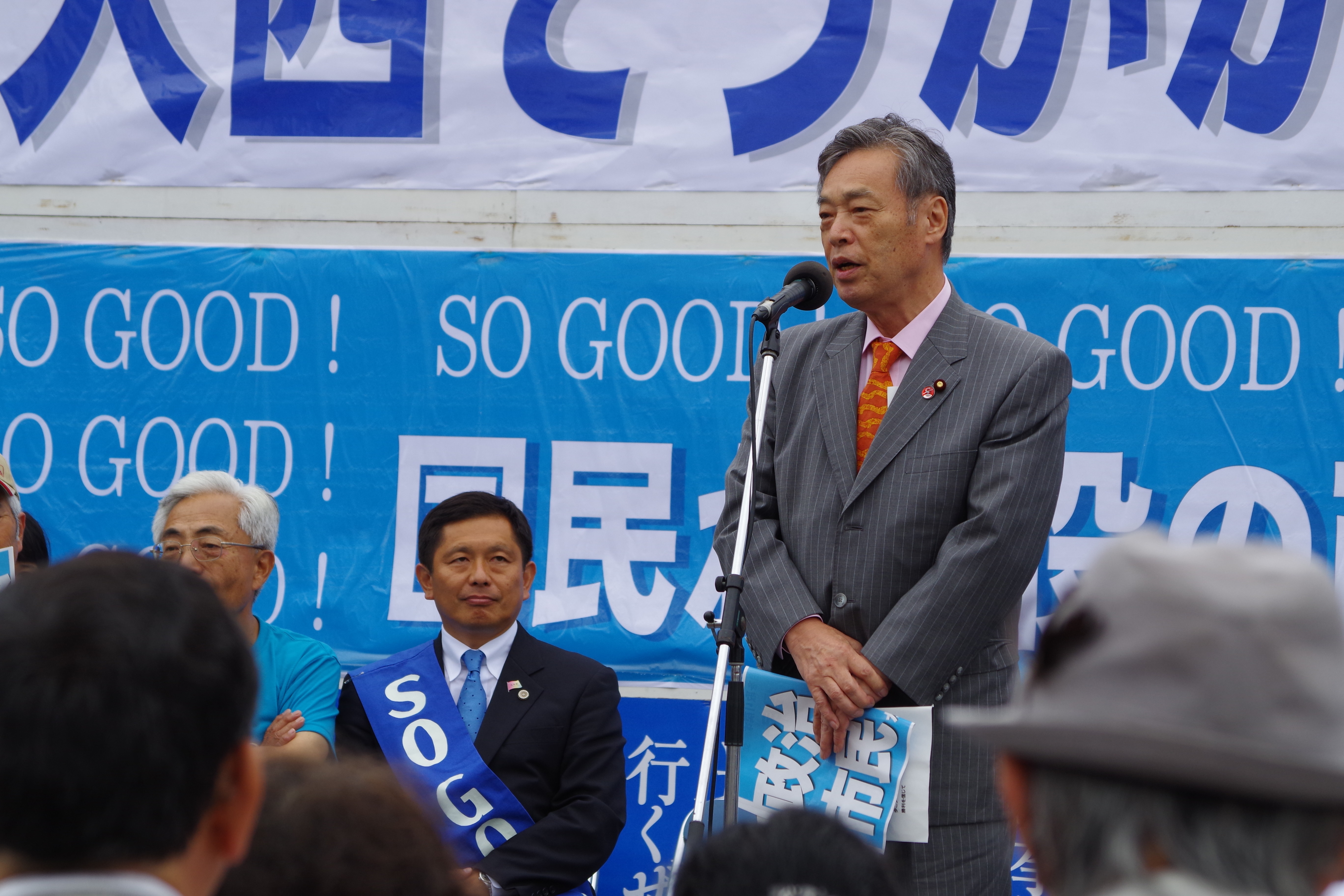 民進党から川田龍平さん(ネクスト厚生労働大臣)、社会民主党から高田良徳さん(香川県議会副議長)、新社会党から岡崎宏美さん(元衆議院議員・新社会党顧問)がそれぞれ代表挨拶を行いました。