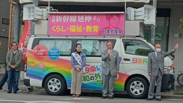 私は、国会の動向を述べ、岸田政権の末期症状にも触れ、京都市長選挙での日本共産党の重要な役割を語り、京都から政治の流れを変えましょうと訴えました。