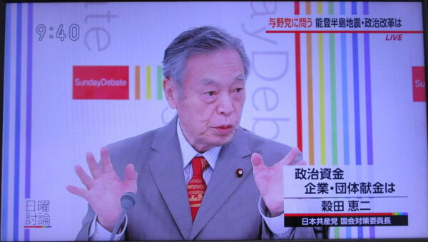 4日「NHK日曜討論」出席。裏金の全容解明!企業団体献金の禁止、政党助成金の廃止を主張!