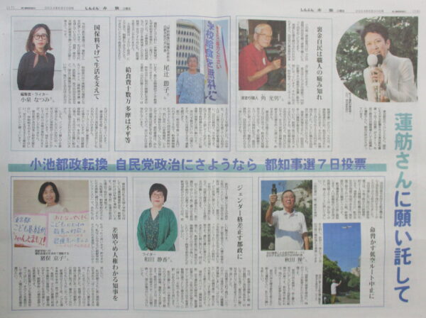 【赤旗日曜版】6月30日号。東京都知事選・蓮舫さんの奮闘を特集!