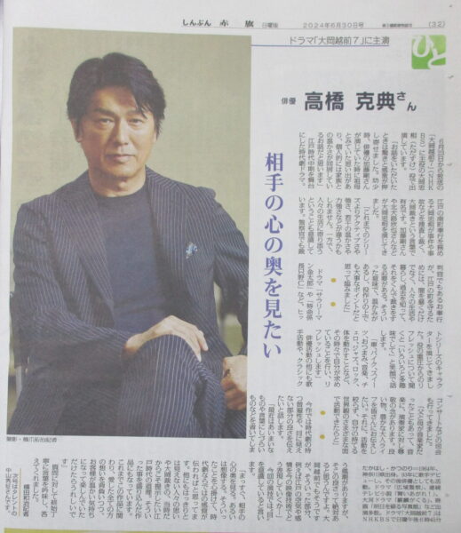 6月23日から放送の「大岡越前7」(NHKBS)に主役の大岡忠相役で出演しています。
