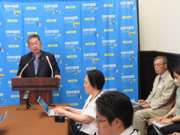 26日、国会内で小池晃書記局長が会見。私も同席しました。