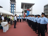 5日、京都市南区にある京都市消防活動総合センターで京都市消防団の総合査閲が開催された。各消防団を激励した。