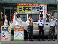 JR草津駅西口では、西川ひとし衆院滋賀3区予定候補、藤井みえ子、久保あきお、しのはらともこの各草津市会議員とともに訴えました。8恒例の宣伝とはいえ、いつもご参加いただきありがとうございます)