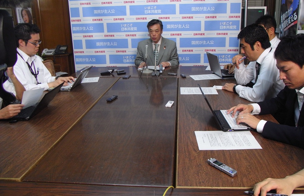 本会議に先立つ議院運営委員会で私は以下の意見表明を行い、記者会見し(写真)日本共産党の見解を明らかにしました。