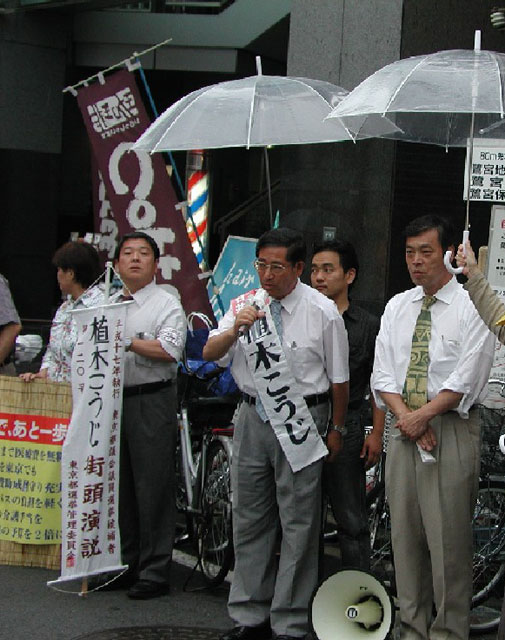 昨日は中野区の植木こうじ候補の応援に駆けつけた。西武鷺宮駅にて、地元後援会の皆さんの援助を受け宣伝。 駅前の商店街に向け訴えた。 「知ってはりますか?政府税調発表のサラリーマン大増税計画を」と切り出した。 その内容はひどいもの。所得税・住民税――定率減税の廃止に加えて、配偶者控除、扶養控除、給与所得控除など各種控除の廃止・縮小による増税を行なうと書かれてある。 年収500万円のサラリーマン世帯には、年間42万円の増税になる。 各政党の態度はどうだろう? 自民、公明は大慌てで、都議選前に出すのは「タイミングが悪い」と述べている。これらの党の党利党略振りにはあきれる。国民への大打撃となる中身が問題ではないか。与党の税制改革大綱で、「控除の見直し」と大増税の旗を振っておきながらなんだ。 民主党は、昨年の参院選挙政策で「『控除主義』を改めよ」と公約。民主党が提出した「予算案」では、「扶養控除、配偶者控除を廃止」を主張。まさに大増税派ではないか。 大増税反対の一票は、日本共産党へ。 日本共産党の植木さんの勝利で大増税をストップしよう。商店街の営業に大打撃を与える大増税をストップしよう。