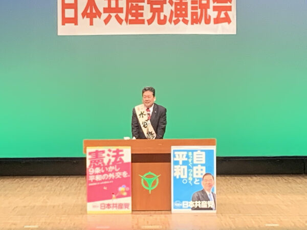 私は、演説の冒頭、「水谷修府議と宇治市会議員団、久御山の日本共産党議員団の重要な役割」について、「今、お聞きいただいたように、多彩で個性あふれる議員が大いに活躍している」と指摘。「なぜこうした活躍ができるか」として、「それは、共産党が草の根で住民と結びるいているから」「同時に、党の立党の精神が国民の苦難の軽減にあり、その活動を地で行っているののが、宇治・久御山の議員団だ」と強調しました。